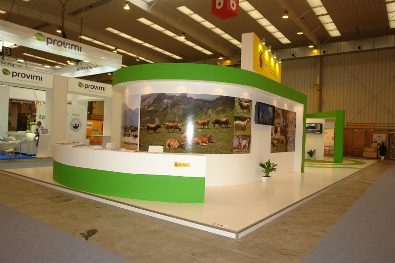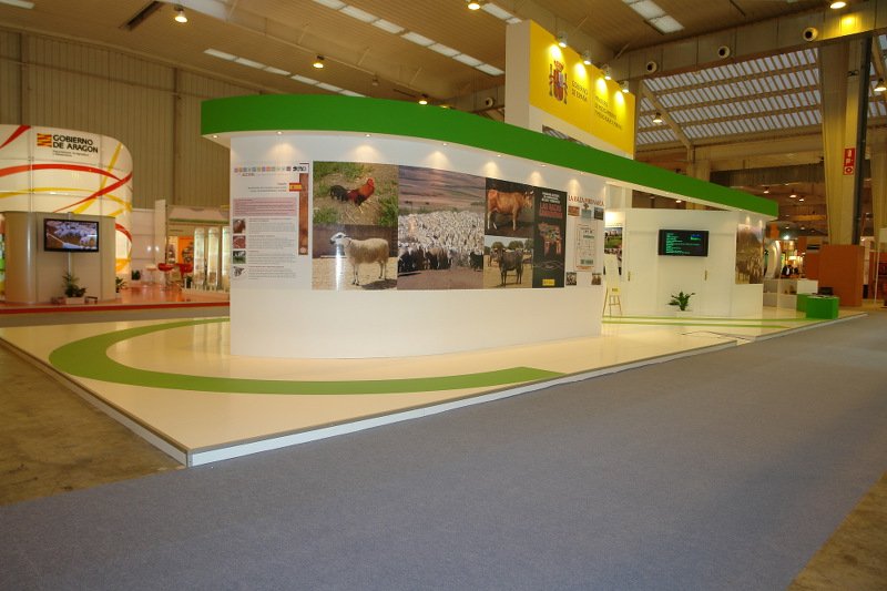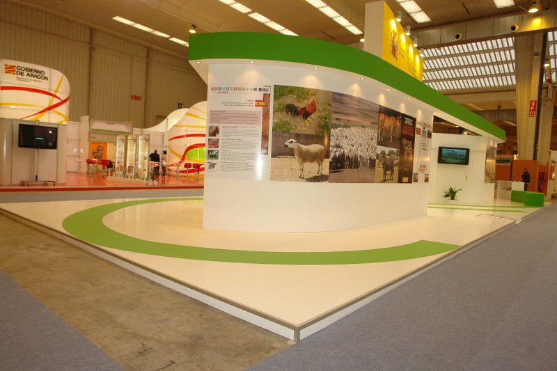 Instalación de vinilos impresos y de corte y todo tipo de rotulación en vinilo. Portfolio de trabajos realizados por la imprenta digital Avinilo en la FIMA Ganadera 2011 de Zaragoza para el Gobierno de España.